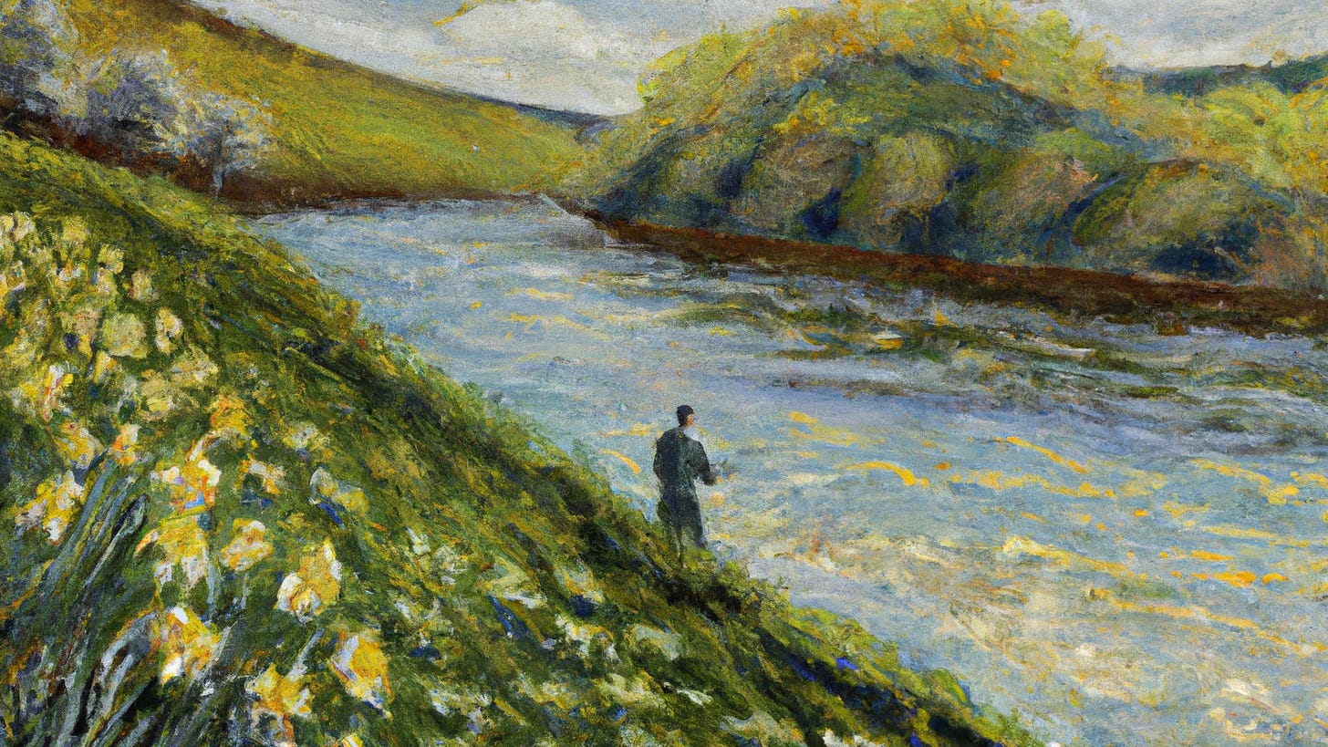 He remained in that field at the river's bend throughout the spring, observing the flowers as they grew. He watched them pop up all around him until he was surrounded. He didn’t leave until the last flower petal turned brown and fell from the bud. Then he cried. There was something so sad about death that he couldn’t quite express. He left the field to continue creation, but he couldn’t fully let go of those flowers. Regularly he came back, watching, waiting. He had the time.He waited through summer, fall, and winter until spring. Then he watched the magic dance of the daffodils all over again.